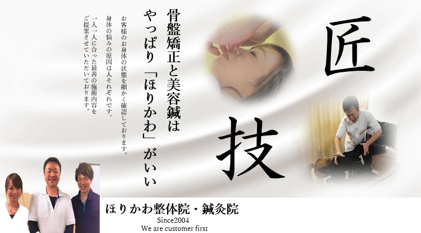 ご案内 初めての方はぜひお読みください こんにちは。 ほりかわ鍼灸接骨院/整体院院長の廣瀬です。 この度は当院のHPをご覧頂き ありがとうございます。 施術の特徴を簡単にご説明させて頂きます。 通院にあたり 最後までお読み頂けるとうれしいです。 通院する事で変化が実感できます! 【ほりかわ整体院に期待できるメリット】 長い間悩んでいたお身体の不調もスッキリ!...